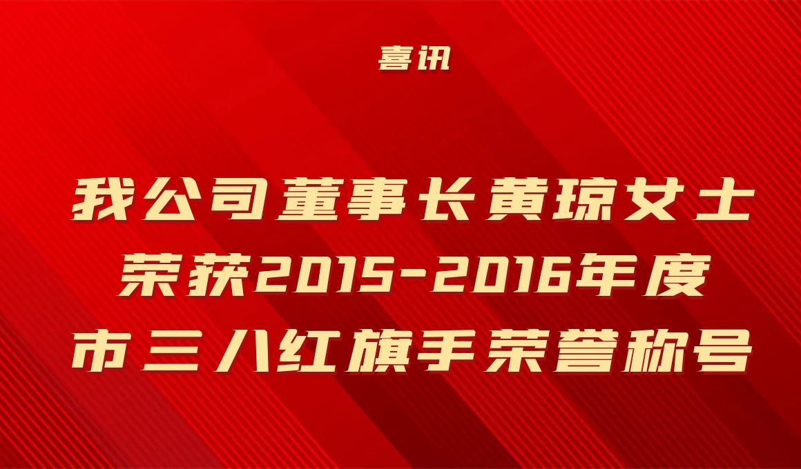 【喜讯】我公司董事长黄琼女士荣获2015-2016年度市三八红旗手荣誉称号