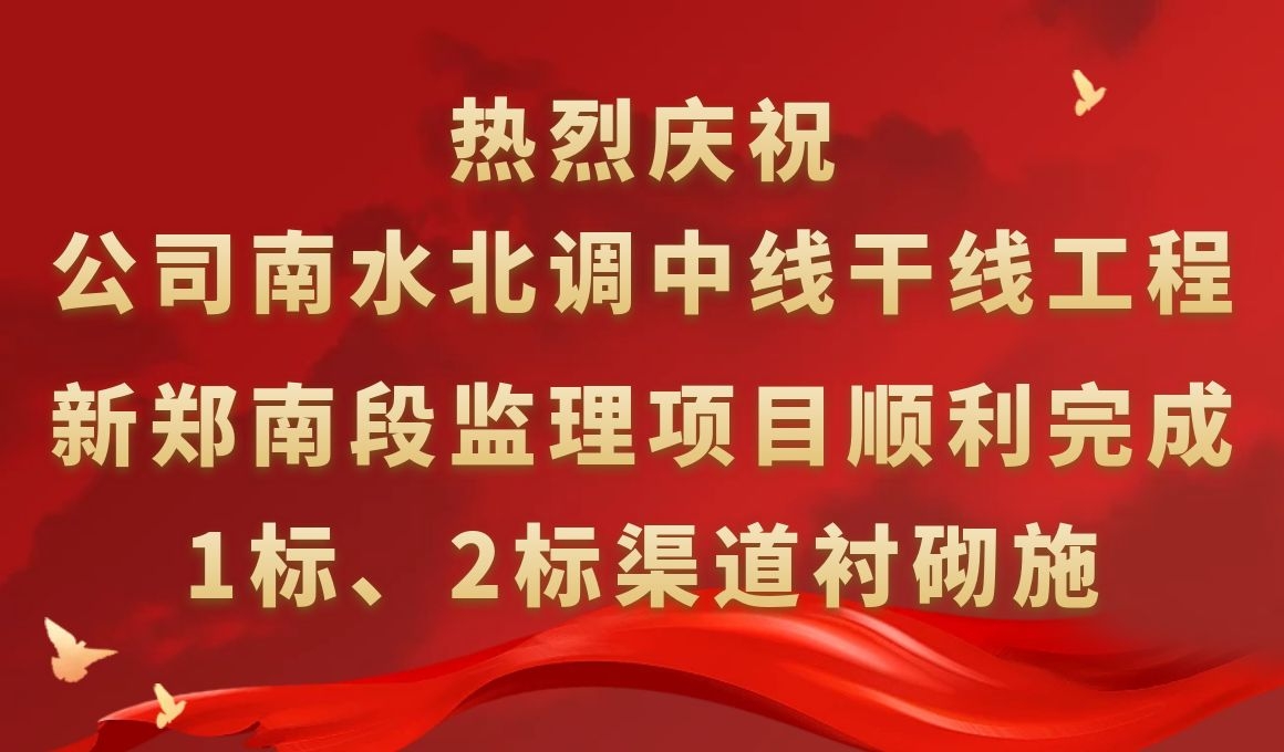 热烈庆祝公司南水北调中线干线工程新郑南段监理项目顺利完成1标、2标渠道衬砌施